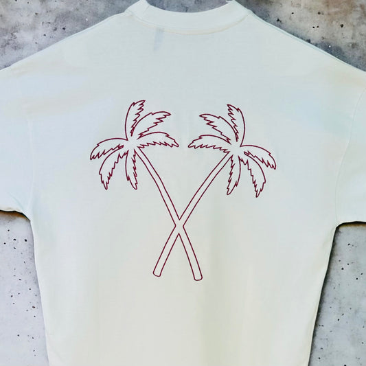 NAVY BLUE & BURGUNDY EMBROIDERED CREAM ON A MISSION PALM TREE TEE